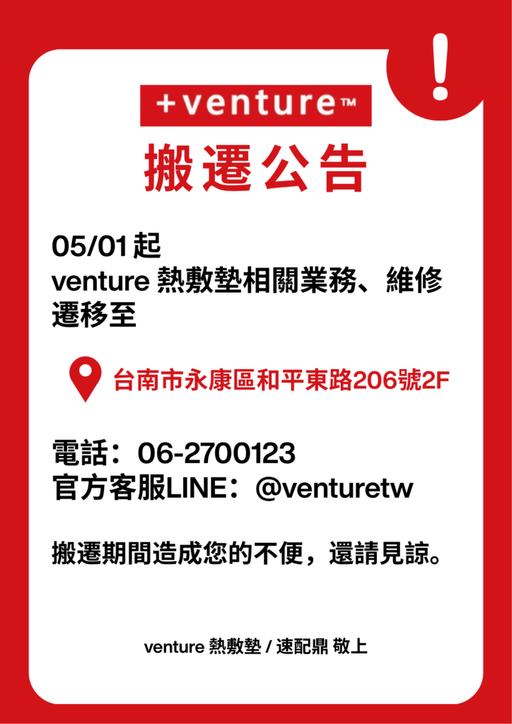 速配鼎國際股份有限公司 速配鼎國際股份有限公司創立於民國91年,其電子商務部門致力於開拓各國精品與百貨業務,在台灣獨家取得美國最佳熱敷品牌+venture的授權,成為台灣暨中國地區總代理,並於2012年爭取更進一步授權,在台灣設立GMP生產工廠-美尚醫療器材股份有限公司(由美國研發設計,台灣GMP廠製造),計劃以MIT&GMP的高品質來生產,銷售穿戴式熱敷墊皆符合&通過國家標準進而提高產品的價值與消費者的信賴! Our Product 工廠直營 商品款式齊全 您可親身體驗,選購最適合您的款式,歡迎您蒞臨參觀選購! 實體店選購